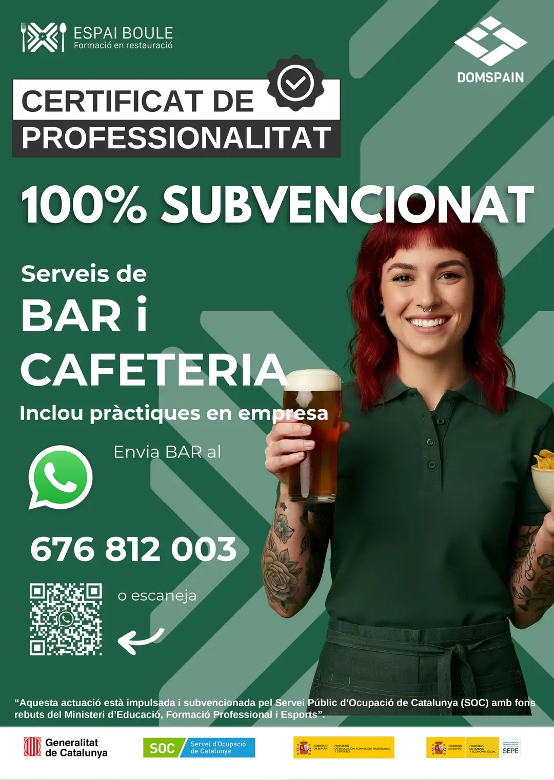 «Aquesta actuació està impulsada i subvencionada pel Servei Públic d’Ocupació de Catalunya (SOC) amb fons rebuts del Ministeri d’Educació, Formació Professional i Esports»